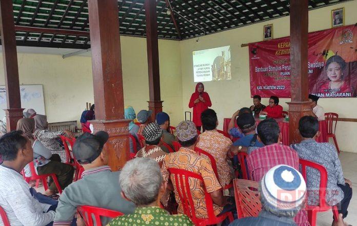 Kabupaten Klaten – Ketua DPR RI, Dr. (H.C.) Puan Maharani atau yang akrab disapa Mbak Puan memberikan dana aspirasi berupa Bantuan Stimulan Perumahan Swadaya (BSPS) kepada warga masyarakat kurang mampu di Desa Burikan dan Desa Pogung Kecamatan Cawas. Hal tersebut disampaikan oleh Anggota Fraksi PDI Perjuangan DPRD Jawa Tengah, Hj. Kadarwati, S.H., M.H saat memberikan Sosialisasi Bantuan Stimulan Perumahan Swadaya (BSPS) kepada calon penerima, Sabtu (4/3/2023).