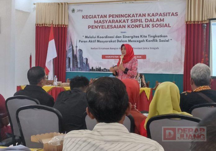 Kabupaten Klaten – Anggota Fraksi PDI Perjuangan DPRD Jawa Tengah, Hj. Kadarwati, S.H., M.H bekerja sama dengan Badan Kesatuan Bangsa dan Politik (Kesbangpol) Jawa Tengah menggelar kegiatan Peningkatan Kapasitas Masyarakat Sipil dalam Penyelesaian Konflik Sosial.