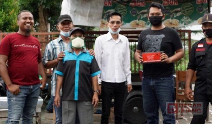 Kabupaten Banyumas – PAC PDI Perjuangan Kembaran, bersama Asisten Mentor Juang Pengampu Komunitas Juang, AMJ Yusuf Arinton Sasongko berbagi doorprize di parkiran Pasar Larangan, Minggu (5/6/2021).