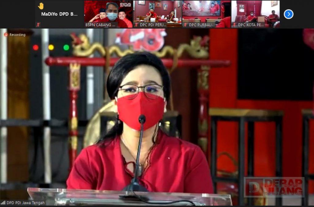 Bendahara DPD PDI Perjuangan Jawa Tengah, Agustina Wilujeng Pramestuti, saat memberikan sambutan pembukaan seminar yang diselenggarakan oleh DPD PDI Perjuangan Jawa Tengah
