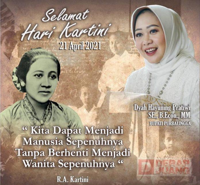 Kabupaten Purbalingga – Semangat dan perjuangan Raden Ajeng (R.A) Kartini untuk menjunjung tinggi kaum perempuan patut ditiru. Sosoknya pun banyak menjadi inspirasi kaum hawa masa kini. Tak terkecuali Bupati Purbalingga, Dyah Hayuning Pratiwi.