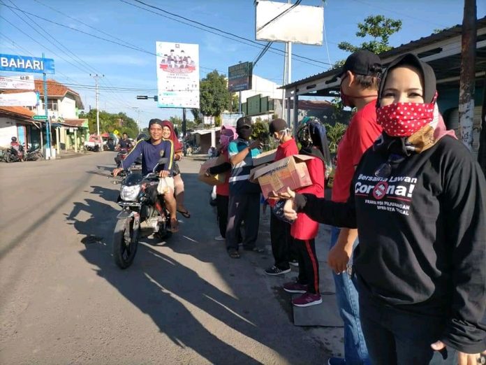 Kota Tegal – Minggu, 12 April 2020. Aksi bakti sosial bagi sembako dan makanan rutin dilakukan oleh Angota Fraksi PDI Perjuangan di Kecamatan Tegal Selatan, Kota Tegal. Aksi tersebut dilakukan sebagai bentuk peduli kepada masyarakat siapa lagi kalau bukan Hj. Rosalina, SIP.