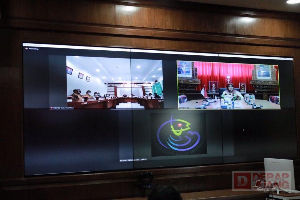 Kabupaten Klaten – Bupati Klaten, Hj. Sri Mulyani secara virtual di ruang kerjanya, Kamis (16/9/2021), membuka pelaksanaan kegiatan Pengelolaan Ikan di Bidang Perikanan, Dinas Pertanian Ketahanan Pangan dan Perikanan Kab. Klaten.