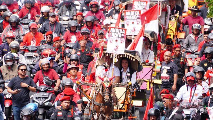 Dalam perjalanan pun terdengar teriakan pendukung yang ikut mengejar delman yang dinaiki Andika di depan kantor DPD PDI Perjuangan Jateng.