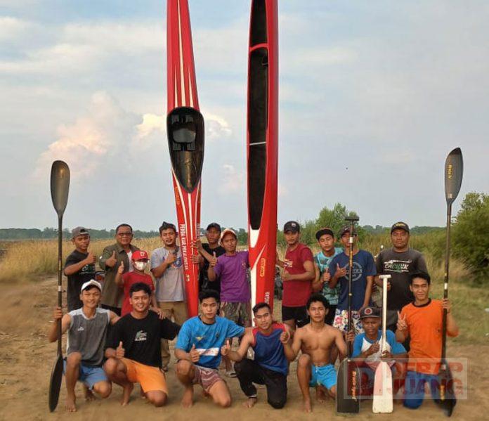 Untuk menunjang dan mendukung prasarana dan sarana latihan, Ketua Umum PODSI Kabupaten Pekalongan, Mohammad Kenedi memberikan bantuan berupa prahu kano dan kayak beserta kayuhnya, di tempat latihan, Selasa (21/6/2022).