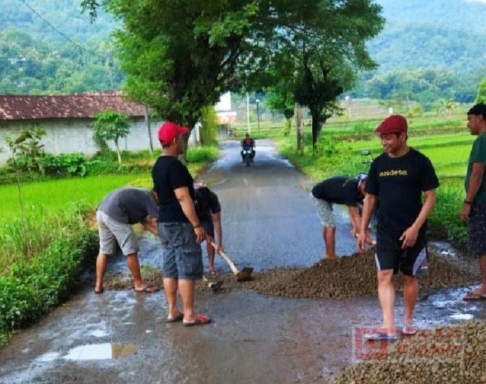 Kabupaten Wonogiri – Tri Wahyudi, salah satu KomandanTe Bintang Dua Dapil 4 Wonogiri ajak warga masyarakat bergotong-royong melaksanakan kegiatan pengurugan ruas jalan yang berlubang dan rusak, Minggu (27/3/2022).