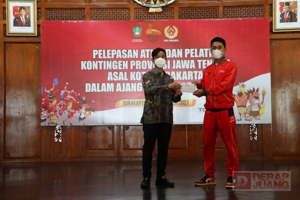Kota Surakarta – Wali Kota Surakarta, Gibran Rakabuming Raka melepas atlet dan pelatih, serta official Perwakilan Solo untuk memperkuat kontingen Provinsi Jawa Tengah di ajang PON XX Papua 2021. Sebanyak 64 orang yang terdiri dari, 52 atlet, serta 12 pelatih dan official dan teridri dari 19 cabang olahraga (cabor), dilepas di Pendapi Gede, Balaikota Surakarta, Jumat (17/9/2021).