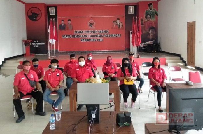 Kabupaten Pati – Komunitas Juang Kab. Pati mengikuti Webinar HUT Komunitas Juang Jawa Tengah yang ke-7 dan dilaksanakan di Kantor DPC PDI Perjuangan Kab. Pati, Sabtu, (14/11/2020).