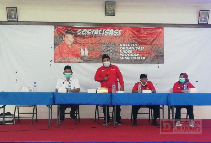 Kabupaten Batang – Dengan tekad membesarkan PDI Perjuangan di Kab. Batang, Ketua DPC PDI Perjuangan Kab. Batang, H. Ahmad Ridwan, S.E., M.M., terus melakukan kegiatan konsolidasi Partai. Dalam putaran keempat kali ini, H. Ahmad Ridwan memilih Desa Blado, Kecamatan Blado menjadi lokasi penggemblengan para Kader dari dua kecamatan, yaitu Kader perwakilan tingkat PAC, Ranting PDI Perjuangan yang berada di Kecamatan Blado, serta Kecamatan Pecalungan, Rabu, (24/3/2021).