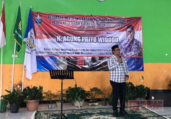 Dalam sambutannya, sosok yang akrab disapa Mas Agung ini mengatakan bahwa Reses pada dasarnya merupakan kewajiban yang mesti dilakukan oleh anggota dewan untuk menampung usulan, masukan, maupun kritik terhadap kebijakan-kebijakn publik. Aspirasi dari masyarakat ini kemudian akan ditindaklanjuti oleh seorang anggota dewan dalam rapat parlemen sehingga harapan-harapan masyarakat ini bisa terealisasikan.
