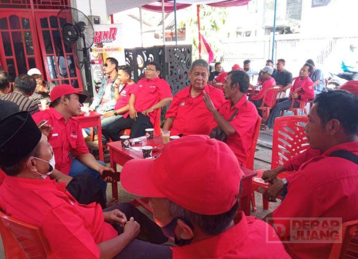 Sambil duduk santai, para kader PDI Perjuangan Kota Pekalongan yang hadir secara bersama-sama nyeruput kopi. Juga dilengkapi dengan perbincangan soal Partai dan isu terkini.