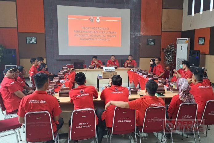 Kabupaten Boyolali – Korps Komunitas Juang (KJ) Boyolali menggelar Rapat Koordinasi (Rakor) bersama koordinator KJ antar kecamatan yang ada di Boyolali. Giat tersebut berlangsung di Balai Bung Karno DPC PDI Perjuangan Boyolali, Jumat (20/1/2023).