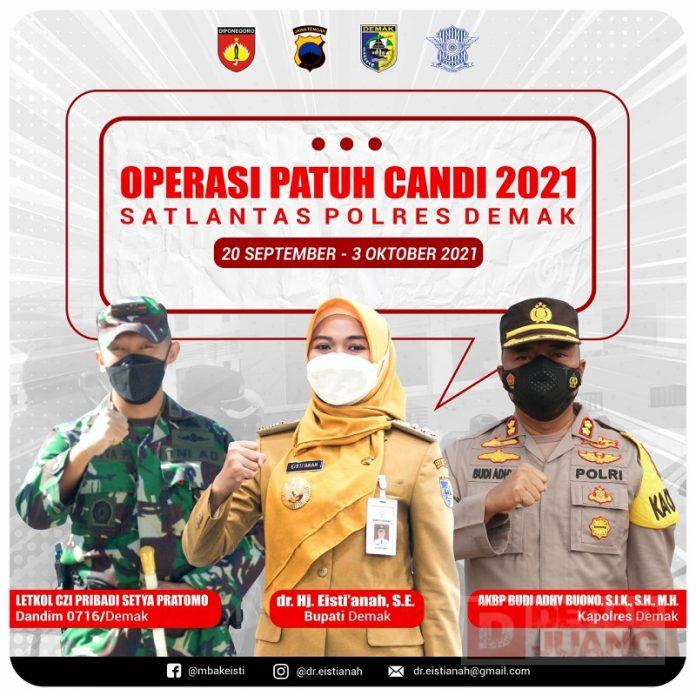 Kabupaten Demak – Menyikapi adanya program Operasi Patuh Candi tahun 2021 yang berjalan kurang lebih 2 minggu ke depan, Bupati Demak, dr. Hj. Eisti’anah turut mensukseskan kegiatan tersebut dengan ragam cara.