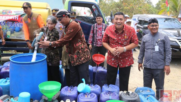 Foto: Taufik Nurhidayat (tengah) meninjau bantuan air bersih di Desa Bojong, Kecamatan Kawunganten