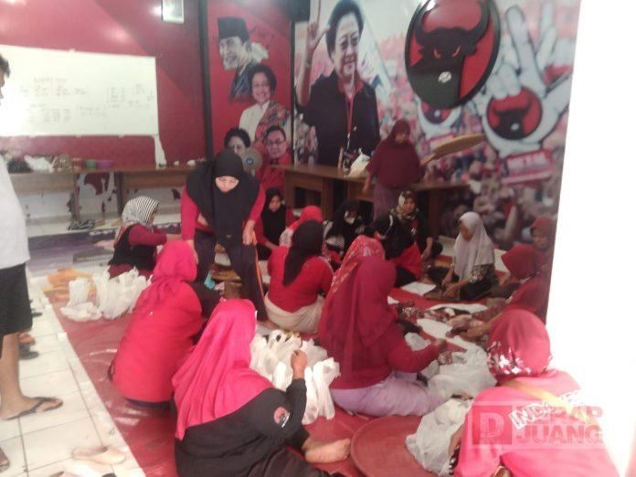 Nampak gotong royong segenap pengurus DPC PDI Perjuangan Kota Tegal dan Departemen Wanita PDI Perjuangan Kota Tegal saat penyembelihan hewan kurban yang dilakukan pada, Minggu (10/7/2022).