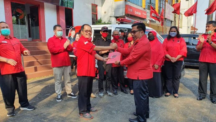 Bertempat di kantor DPC PDI Perjuangan Kab. Temanggung, dilakukan penyerahan mobil ambulance secara simbolis oleh Wakil Ketua Bidang Rekruitmen dan Kaderisasi DPD PDI Perjuangan Jawa Tengah, Sofwan Dedy Ardiyanto kepada Ketua DPC PDI Perjuangan Kab. Temanggung, Yunianto, S.P., Sabtu (5/9/2020).