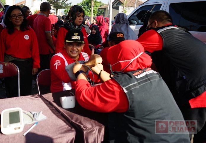 Kabupaten Semarang – Bupati Semarang, H. Ngesti Nugraha, S.H., M.H., berpesan kepada seluruh pimpinan perangkat daerah dalam upaya memastikan kesehatan pegawai Aparatur Sipil Negara (ASN) di Kabupaten Semarang tetap terjaga, dalam peluncuran ‘Petisi OPD Asik’ yang diselenggarakan oleh Dinas Kesehatan Semarang di Alun-alun mini, Jumat (1/8/2023) pagi.