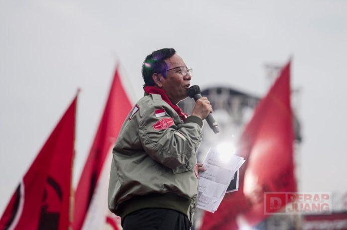 “Semua yang tidak beres harus dihentikan mulai sekarang. Kita tabrak, kita seruduk yang menyebabkan kegelapan demokrasi dan ketidakadilan ekonomi. Untuk itu, niscaya negara harus hadir, hadirnya negara adalah mandat konstitusi,” ujar Mahfud.