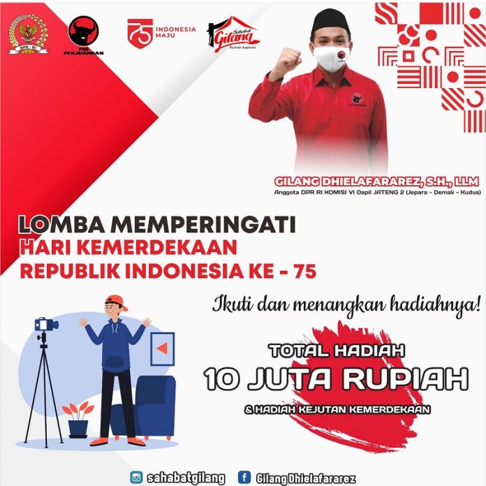 Kabupaten Jepara – Anggota DPR RI Dapil 2 Jawa Tengah Gilang Dhielafararez atau yang akrab disapa Mas Gilang menyelenggarakan lomba video kreatif bertema Hari Kemerdekaan, Senin (10/8/2020).