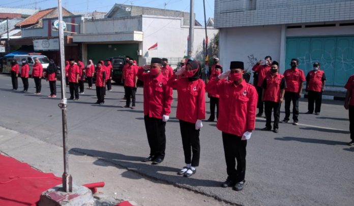 Kota Tegal – Sebagai wujud dalam memperingati Hari Ulang Tahun (HUT) Kemerdekaan Negara Kesatuan Republik Indonesia ke-75, DPC PDI Perjuangan Kota Tegal menggelar upacara Peringatan Kemerdekaan Republik Indonesia. Kegiatan tersebut dilaksanakan di depan Kantor DPC PDI Perjuangan Kota Tegal, Senin (17/8/2020).