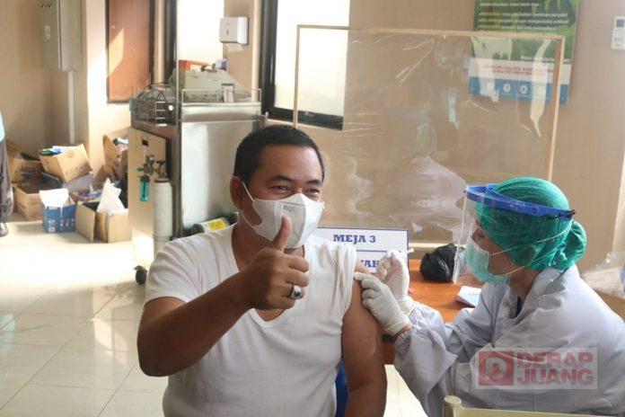 Kabupaten Kudus – Ketua DPRD Kab. Kudus, Masan jalani Vaksinasi Covid-19 perdana dirinya. Vaksinasi perdana tersebut dilakukan di Rumah Sakit Mardi Rahayu Kudus, pada Senin (19/4/2021) pagi.