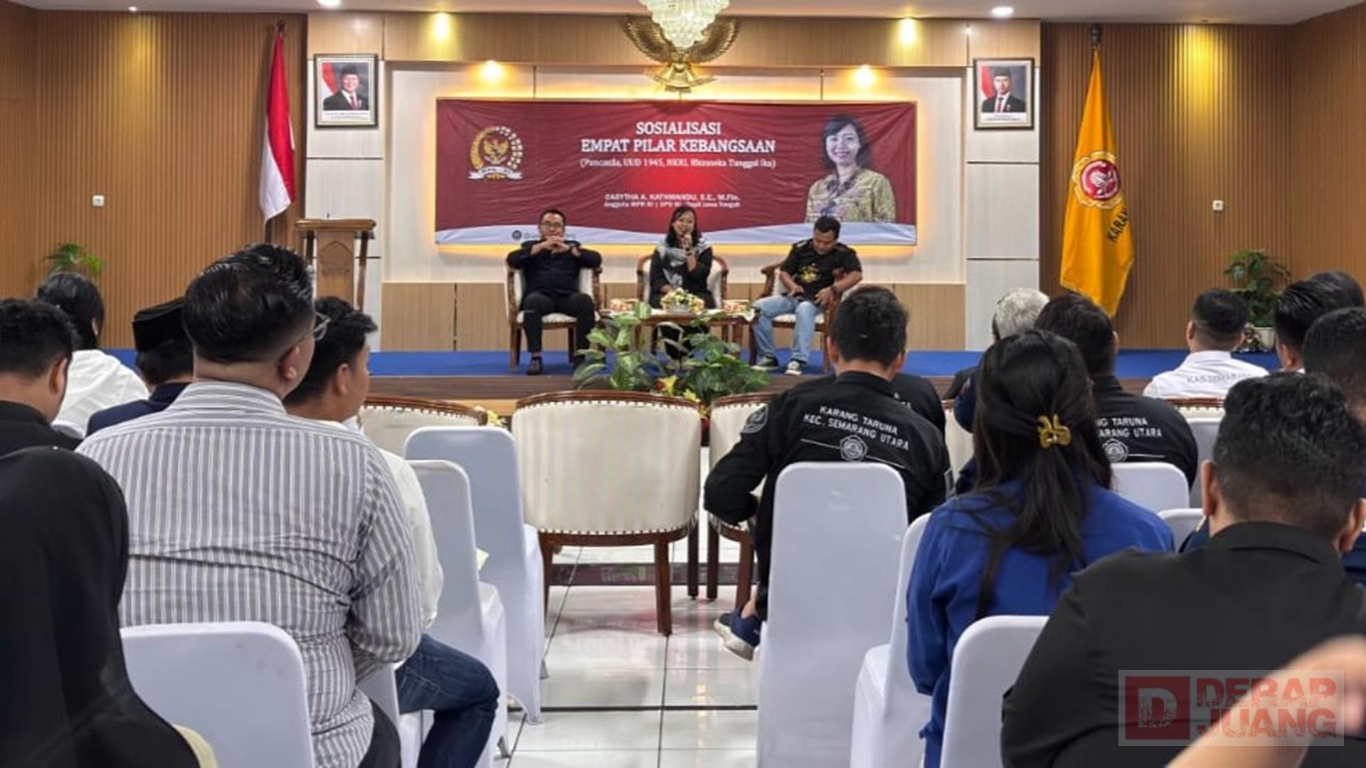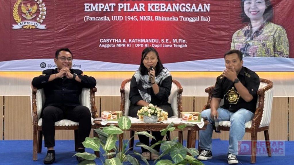 Kota Semarang — Anggota DPD RI asal Jawa Tengah, Casytha Arriwi Kathmandu atau yang akrab disapa Mbak Casytha mengajak generasi muda yang tergabung dalam Karang Taruna untuk memperkuat pemahaman terhadap Empat Pilar Kebangsaan sebagai fondasi menghadapi tantangan ideologi di era digital.