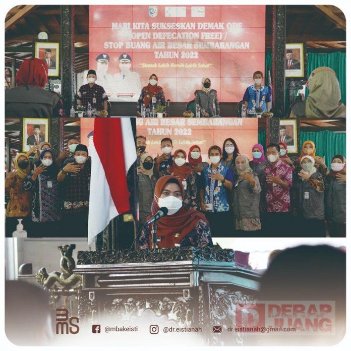 Kabupaten Demak – Bersama jajaran Ka Dinkes, Camat, dan Kepala Puskesmas se-Kab. Demak, dr. Hj. Eisti’anah selaku Bupati Demak menyambut kedatangan Tim Verifikasi ODF (Open Defecation Free) dari Provinsi Jawa Tengah.