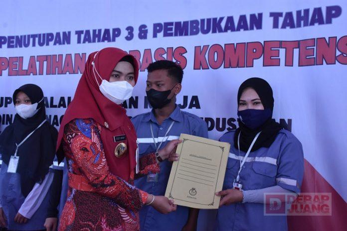 Selain itu, Bupati juga berpesan kepada para peserta yang telah menyelesaiakan pelatihan, terkhusus agar bagaimana mereka untuk dapat terus tekun dan tetap semangat saat terjun ke dunia kerja.