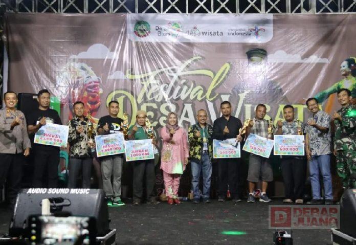 Kabupaten Blora – Penghargaan dan uang pembinaan diserahkan Wakil Bupati Blora Tri Yuli Setyowati kepada perwakilan tokoh masyarakat yang desanya menjadi pemenang di Malam Penganugerahan Festival Desa Wisata.