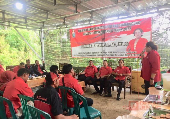 Kabupaten Temanggung – Anggota DPRD Temanggung Fraksi PDI Perjuangan, Intan Kurniasari kembali menggelar giat reses sebagai langkah strategis menyerap aspirasi masyarakat. Kali ini, resesnya dilakukan di Jlegong, Bejen serta dihadiri tokoh masyarakat, PAC Tretep, PAC Wonoboyo, PAC Bejen, dan Ranting Partai di teritori tersebut, Sabtu (19/3/2022).