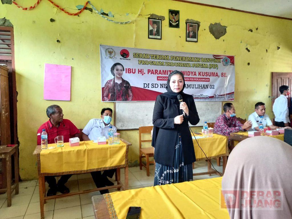 Kabupaten Brebes – Sesuai dengan Permendikbud No. 10 tahun 2020, tentang Program Indonesia Pintar (PIP), yang menjangkau peserta didik dari tingkat Dasar sampai tingkat Perguruan Tinggi. Anggota DPR RI Fraksi PDI Perjuangan, Hj. Paramitha Widya Kusuma, menggelar serahterima bantuan PIP yang dilaksanakan di Kec. Larangan, Kab. Brebes, Rabu (24/2/2021).