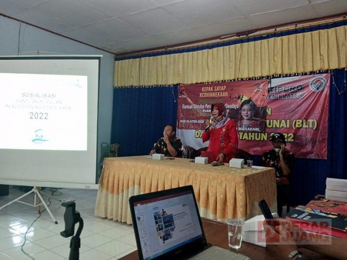 Bertempat di Balai Desa Jatipuro, Kecamatan Trucuk, Mbak Puan Maharani melalui tenaga ahlinya memberikan sosialisasi terkait BSPS dan serap aspirasi masyarakat, Selasa (5/7/2022).
