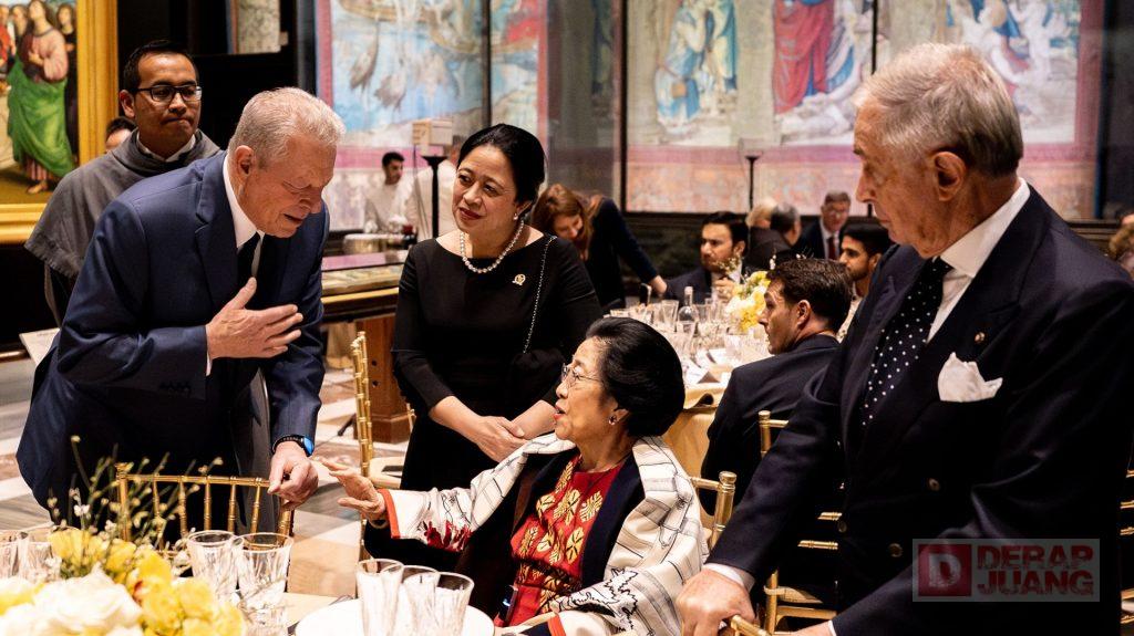 Dalam jamuan makan malam yang diselenggarakan sehari sebelumnya, Mbak Puan sempat berbincang ringan dengan mantan Wapres Amerika Serikat (AS) sekaligus penerima Nobel perdamaian, Al Gore, dan Kardinal Sekretaris Negara Vatikan, Pietro Parolin.