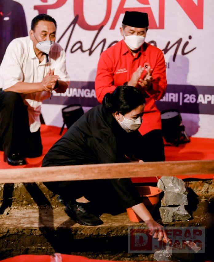 Ketua DPR RI sekaligus Ketua DPP PDI Perjuangan, Puan Maharani melakukan groundbreaking atau peletakan batu pertama kantor DPC di Kabupaten Wonogiri. Selasa (26/04/2022).