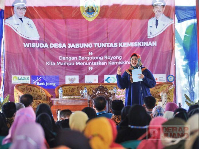 Kabupaten Sragen – Bupati Sragen, Kusdinar Untung Yuni Sukowati atau yang akrab disapa Mbak Yuni menghadiri wisuda Desa Jabung, Kecamatan Plupuh yang telah selesai dalam program desa tuntas kemiskinan. Sabtu (08/10/2022).