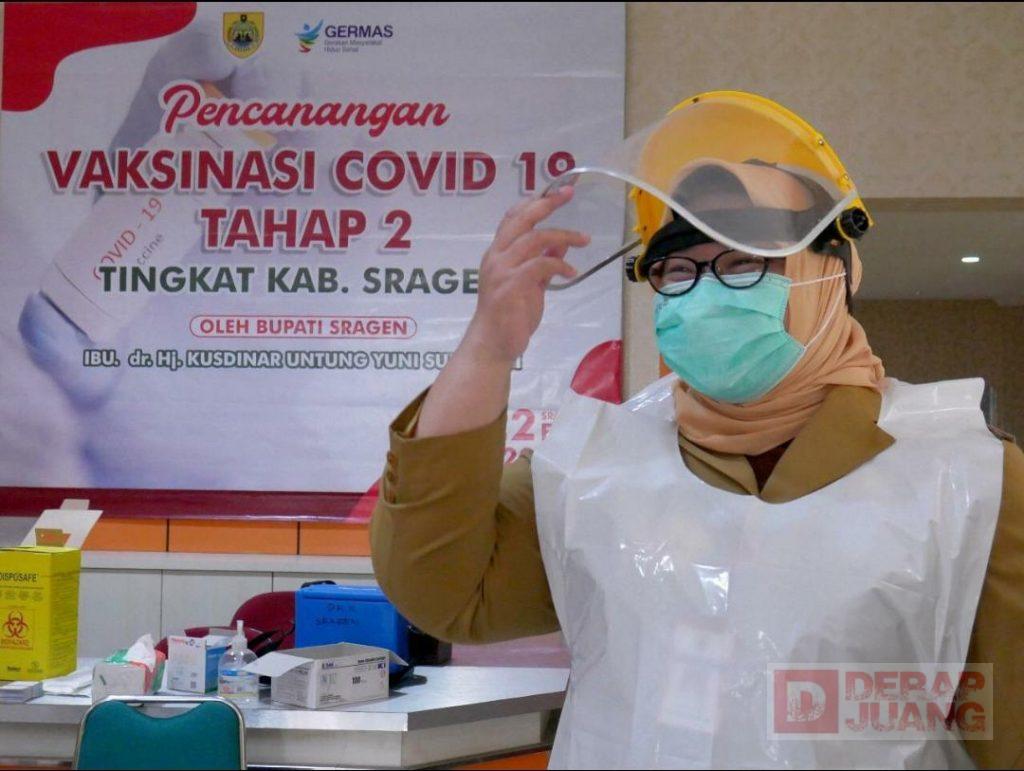 Kabupaten Sragen – Pemerintah Kabupaten Sragen mulai mencanangkan vaksinasi tahap kedua yang diawali oleh jajaran Aparatur Sipil Negara (ASN) di lingkungan Pemkab Sragen. Dalam kesempatan tersebut terdapat pemandangan menarik, di mana Bupati Sragen, dr. Hj Kusdinar Untung Yuni Sukowati turut menjadi vaksinator bagi sejumlah jajaran pejabat di lingkup Pemkab Sragen.
