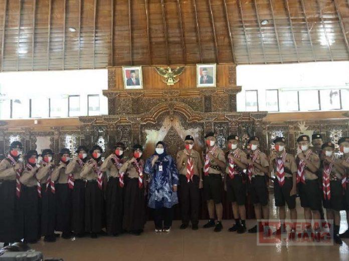 Kabupaten Sragen – Sejumlah 16 peserta kontingen cabang Jambore Nasional (Jammas) XI 2022 Kwarcab Kabupaten Sragen dilepas langsung oleh Bupati Sragen, Kusdinar Untung Yuni Sukowati atau yang akrab disapa Mbak Yuni selaku Ketua Majelis Pembimbing Cabang (kamabicab), Kamis (12/8/2022).