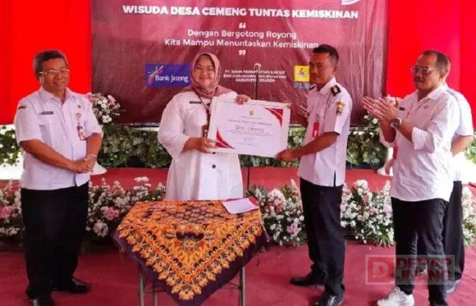 Kabupaten Sragen – Dua Desa di Sragen mendapatkan Sertifikat Desa Tuntas Kemiskinan (Desa Tumis) 2022 dari Bupati Sragen. Adapun penyerahan itu dilaksanakan di halaman SDN 3 Cemeng, Sambungmacan, dan di Balai Desa Kadipiro, Kecamatan Sambirejo. Sertifikat tersebut ditandatangani dan diserahkan langsung oleh Bupati Sragen, Kusdinar Untung Yuni Sukowati atau yang akrab disapa Mbak Yuni kepada kedua Kades.