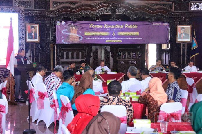 Kabupaten Kudus – Dalam rangka penyusunan rancangan awal RPD Tahun 2024/2026 dan RKPD Tahun 2024, jajaran Pemkab Kudus menyelenggarakan Forum Konsultasi Publik pada Kamis (19/01/2023) di Pendopo Kab. Kudus.