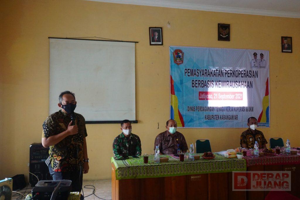 Kabupaten Karanganyar – Selama ini koperasi identik dengan badan usaha yang memberikan jasa simpan pinjam. Dalam memberikan pemahaman koperasi yang lebih luas, Disdagnakerkop UMKM Karanganyar menyelenggarakan kegiatan pemasyarakatan perkoperasian berbasis kewirausahaan dengan narasumber Wakil Bupati Karanganyar, H. Rober Christanto, S.E., dan Dinas Perdagangan Tenaga Kerja Koperasi dan UKM. Kegiatan dihadiri oleh pelaku bisnis UMKM lingkungan Jatiyoso, yang dilaksanakan di Aula kantor KUD Margomulyo, Jatiyoso, Selasa (21/9/2021).