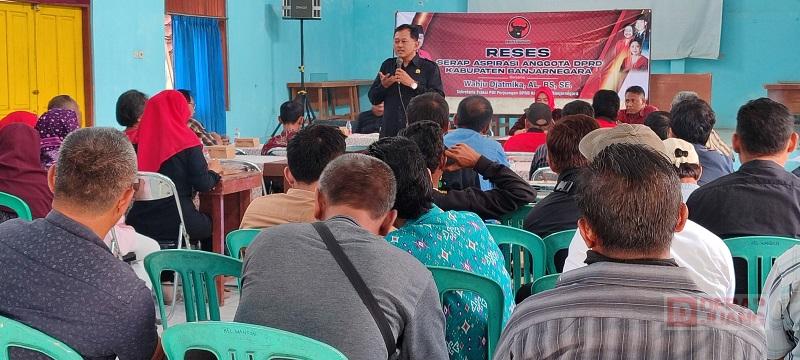Foto: Wahju Djatmika (depan berdiri) Anggota Fraksi PDI Perjuangan DPRD Banjarnegara, saat menggelar reses di Kelurahan Wangon, Kecamatan Banjarnegara. Kamis (12/06/2025)