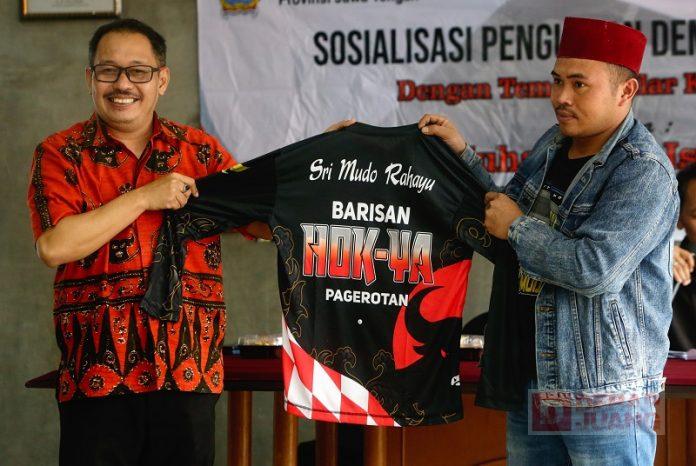 Kabupaten Wonosobo – Anggota Fraksi PDI Perjuangan DPRD Jawa Tengah, Muhammad Isnaeni menggelar kegiatan sosialisasi penguatan demokrasi daerah dengan tema ‘Empat Pilar Kebangsaan’. Adapun kegiatan yang dilaksanakan di Desa Bejiarum, Kecamatan Kertek ini turut dihadiri oleh Wakil Ketua Bidang Rekrutmen dan Kaderisasi DPD PDI Perjuangan Jawa Tengah Sofwan D Ardyanto serta 41 grup kesenian tradisional yang tergabung dalam Barisan HOK-YA Wonosobo, Kamis (19/1/2022).