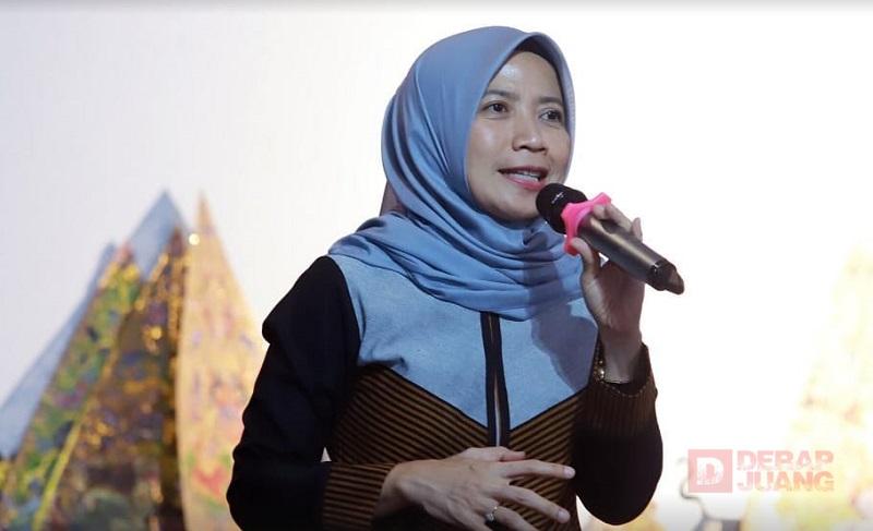 Foto: Ristawati memberikan sambutan dalam acara Merdi Bumi Desa Sidomulyo, Kec.cKaranganyar, Kebumen, Sabtu,(13/07/2024).