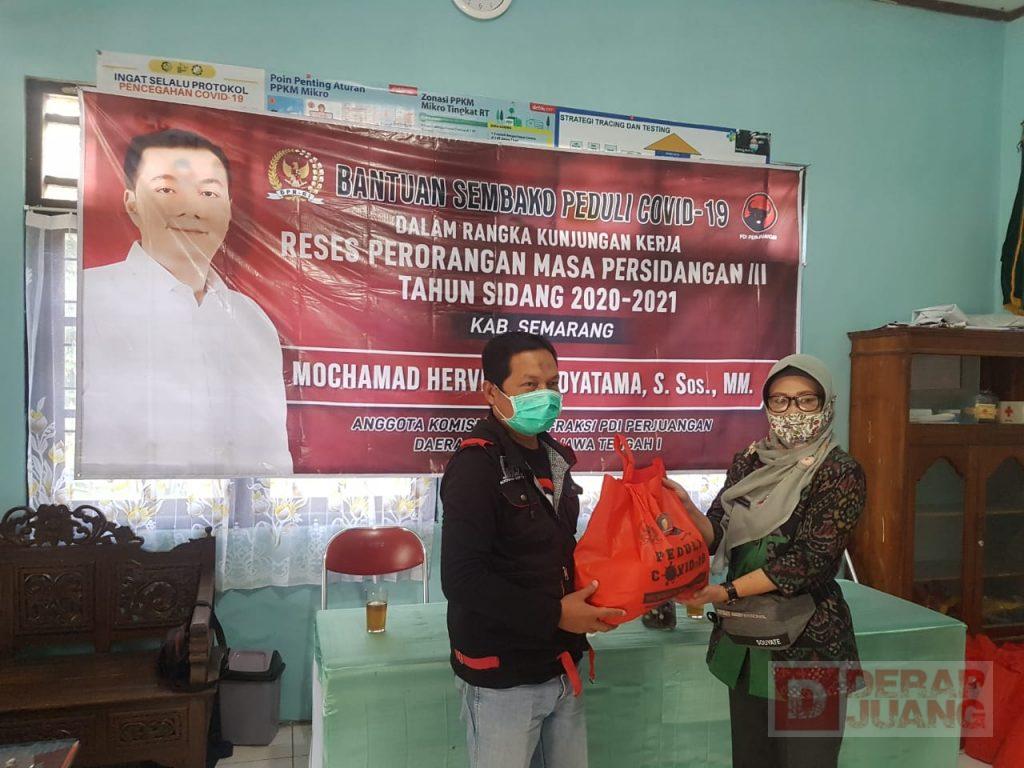 Kabupaten Semarang – Tim pengawal aspirasi Anggota DPR RI Fraksi PDI Perjuangan, Mochamad Herviano mengelar reses dan memberikan bantuan sembako untuk warga yang terdampak Covid-19 di beberapa wilayah, salah satunya di Lingkungan Bergas Lor, Kecamatan Bergas, Kab. Semarang. Selasa (23/02/2021).