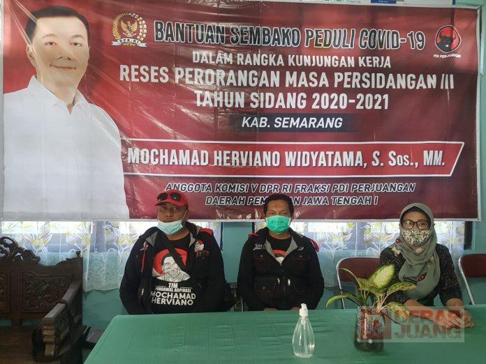 Kabupaten Semarang – Tim pengawal aspirasi Anggota DPR RI Fraksi PDI Perjuangan, Mochamad Herviano mengelar reses dan memberikan bantuan sembako untuk warga yang terdampak Covid-19 di beberapa wilayah, salah satunya di Lingkungan Bergas Lor, Kecamatan Bergas, Kab. Semarang. Selasa (23/02/2021).