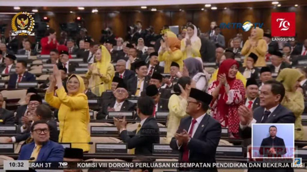 Hal ini langsung disambut standing ovation oleh peserta yang hadir di Sidang Tahunan MPR 2024. Terlihat baik hadiri perempuan maupun laki-laki bertepuk tangan mengapresiasi ajakan puan tersebut.