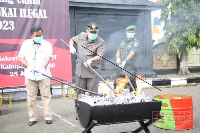 Kabupaten Cilacap – Dalam upaya pemberantasan rokok ilegal, Ketua DPC PDI Perjuangan sekaligus Ketua DPRD Cilacap, Taufik Nurhidayat menghadiri Sosialisasi Ketentuan di Bidang Cukai “Pemusnahan Barang Kena Cukai Ilegal (Rokok Ilegal) TA 2023” di halaman Gedung Sumekar Kabupaten Cilacap, Selasa (25/7/2023).