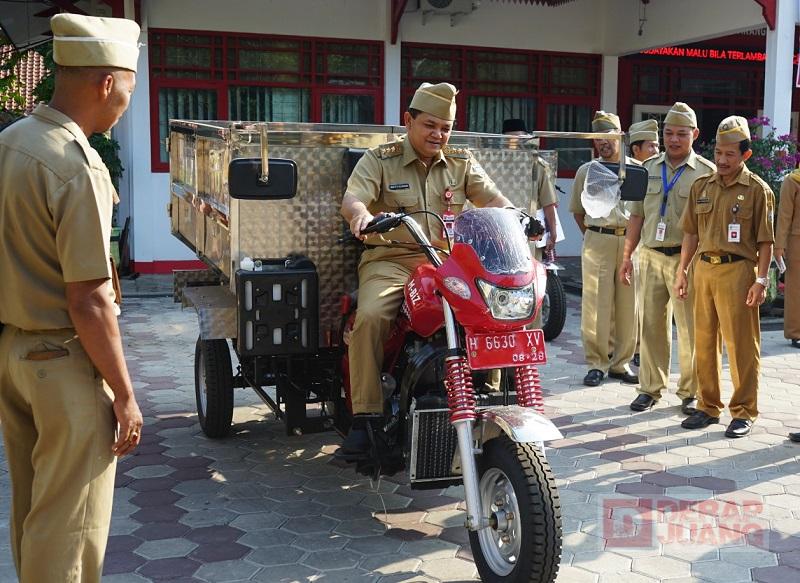 Foto: Ngesti Nugraha (kendarai alat angkut sampah) menjajal alat angkut sampah yang akan disalurkan DLH Kab. Semarang ke 6 desa