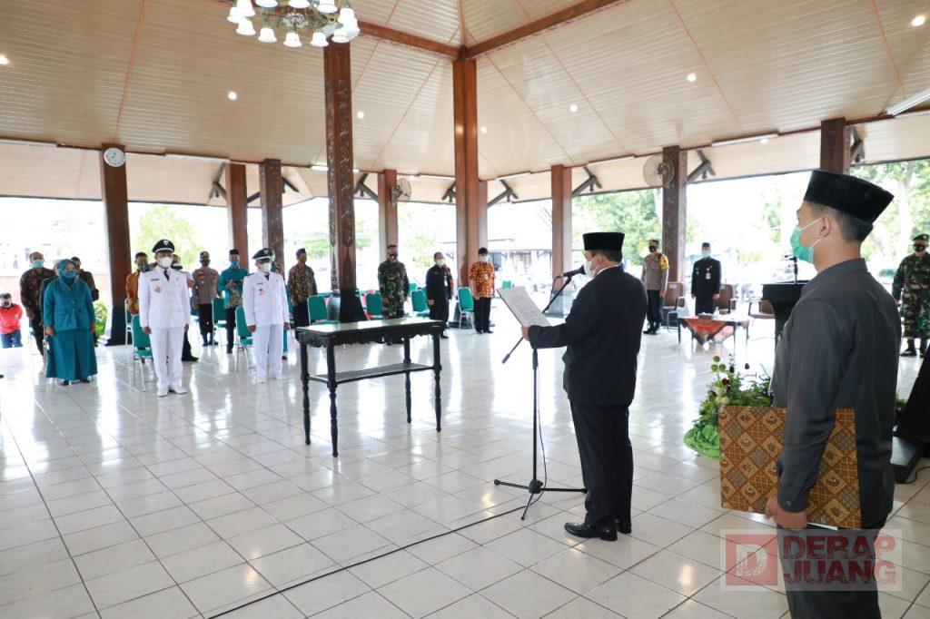 Kabupaten Semarang – Bupati Semarang yang juga ketua DPC PDI Perjuangan Kabupaten Semarang, H. Ngesti Nugraha, SH, MH melantik Kepala Desa (Kades) Lemah Ireng Kecamatan Bawen bernama Kaswan, serta Kades Tawang Kecamatan Susukan bernama Muhammad Jatmiko, di Pendopo Rumah Dinas Bupati Semarang, Jumat (16/4/2021).