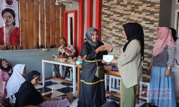 Salah seorang ibu penerima PIP, Retno Palupi mengucapkan terima kasih kepada Nike Yunita yang telah menyalurkan bantuan PIP dari Mbak Puan.